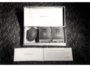 この「SAVON DE SOIE・3個入」を銀座の鐘紡サービス店で、輸出用(6円)と国内用(1円50銭)の両方を並べて販売したところ、高価格にもかかわらず、パッケージデザインに工夫を凝らした輸出用のほうが良く売れたそうです。